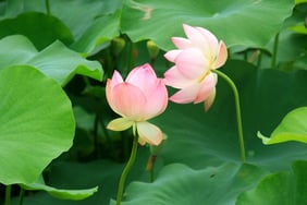 蓮の花は、夜明けと共に、泥の中から優雅な花を咲かせ、そしてわずか4日目には散ってしまう可憐な花です。仏教では泥水の中から生じ清浄な美しい花を咲かせる姿が仏の智慧や慈悲の象徴とされました。