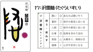 24日 9月 2020 金銭がテーマで【われ動きて彼喜ぶ】の象の沢雷随 おはようございます。 金銭がテーマで【われ動きて彼喜ぶ】の象の沢雷随がでたらどう読むか? 相手に合わせて進むことで吉を呼ぶので、素直に財を求めて大丈夫成功します。 いいよね♪ tagPlaceholderカテゴリ: 翔氣塾, イーチンタロット